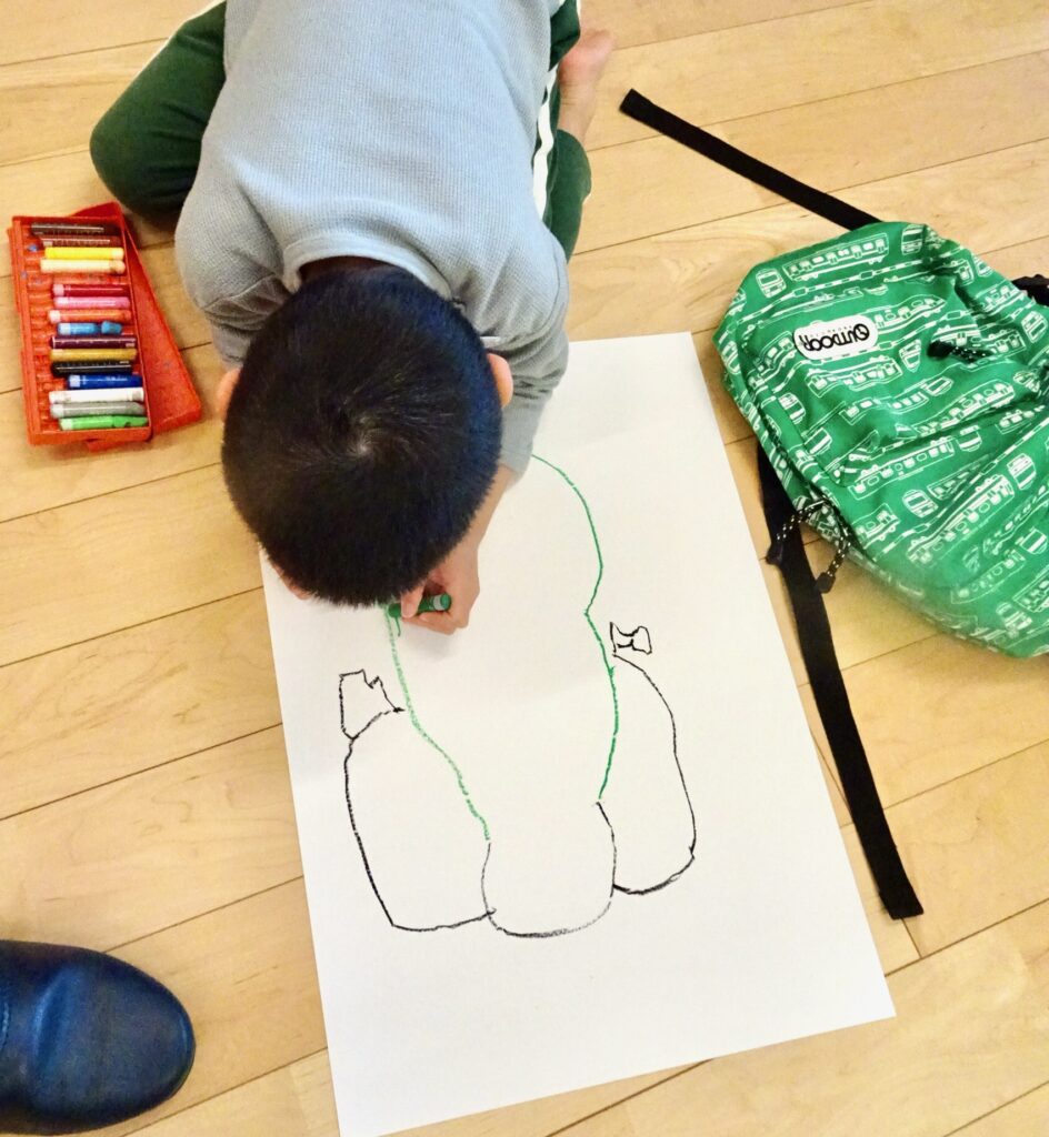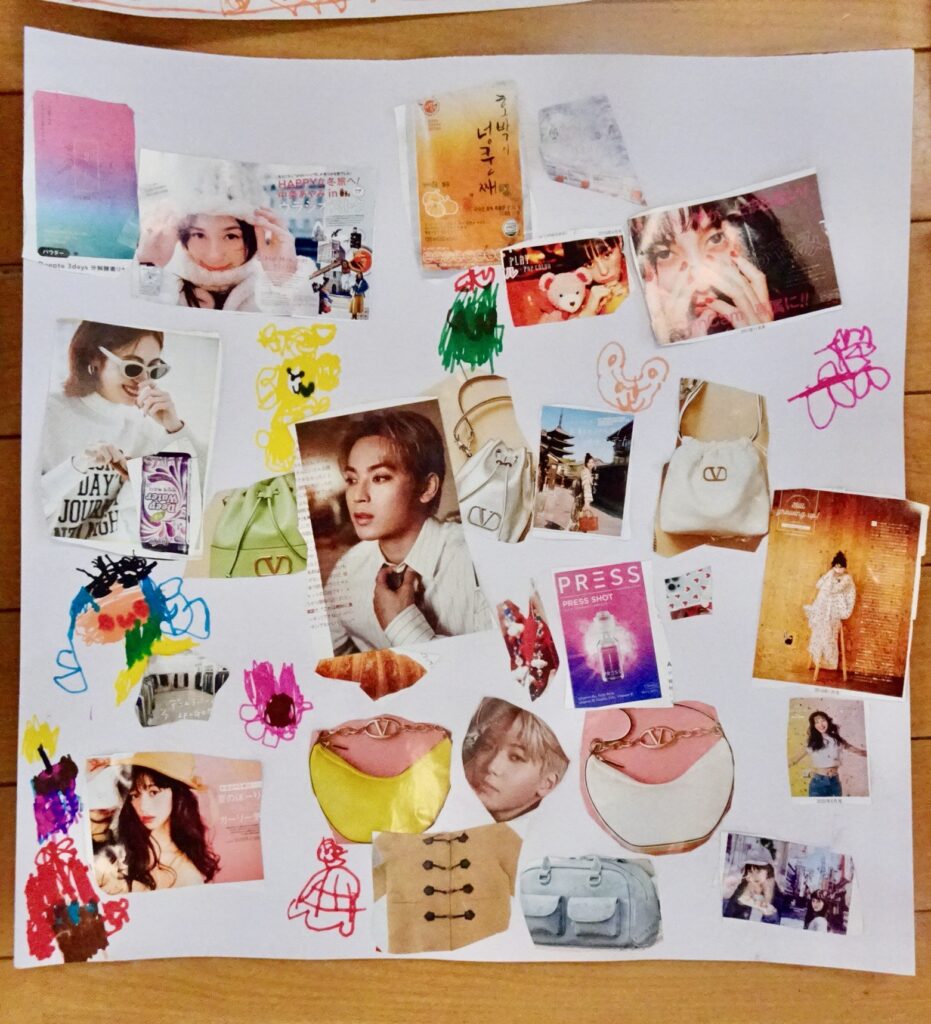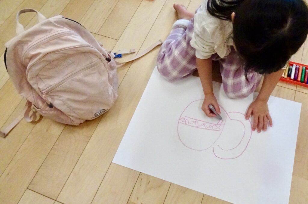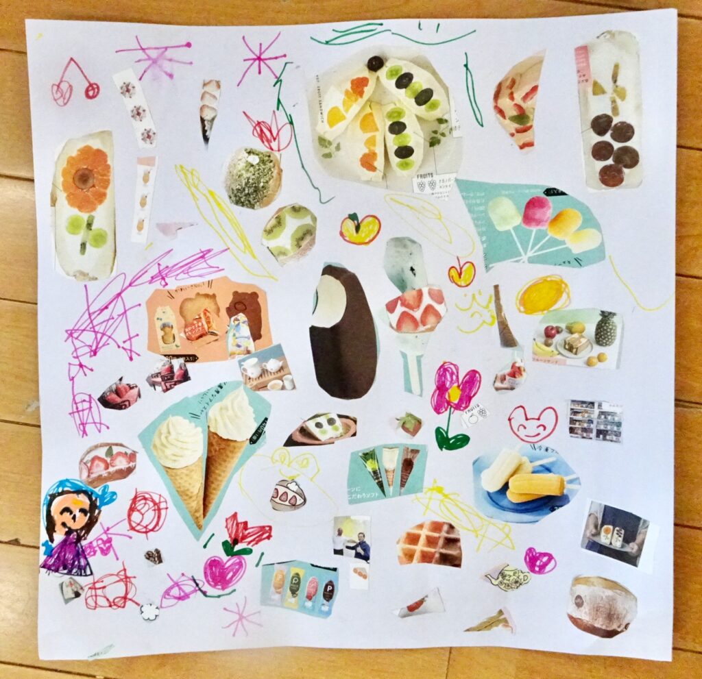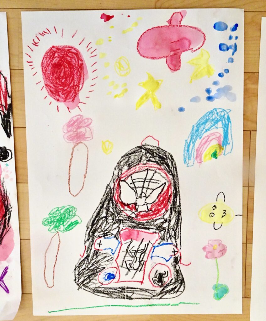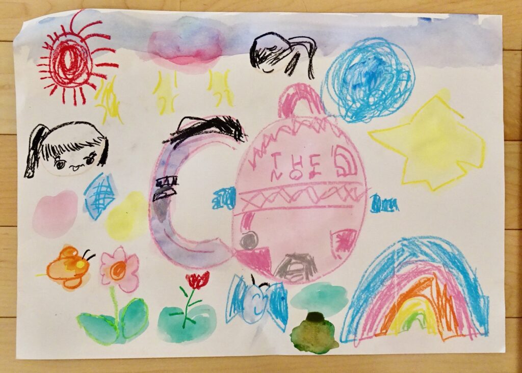 周りも、色の飾りや、先生に聞いた好きなものなどを描き加えていて