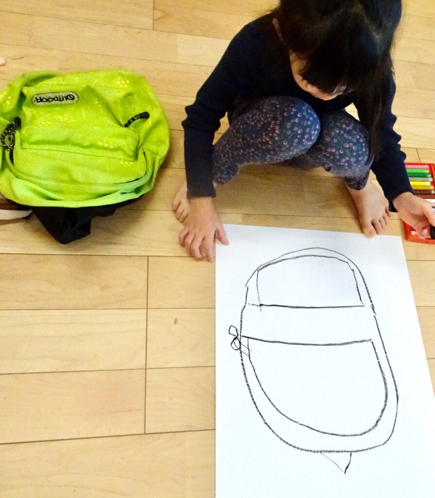 「ここはチャックになって開くの!」「紐がながいんだよ」と