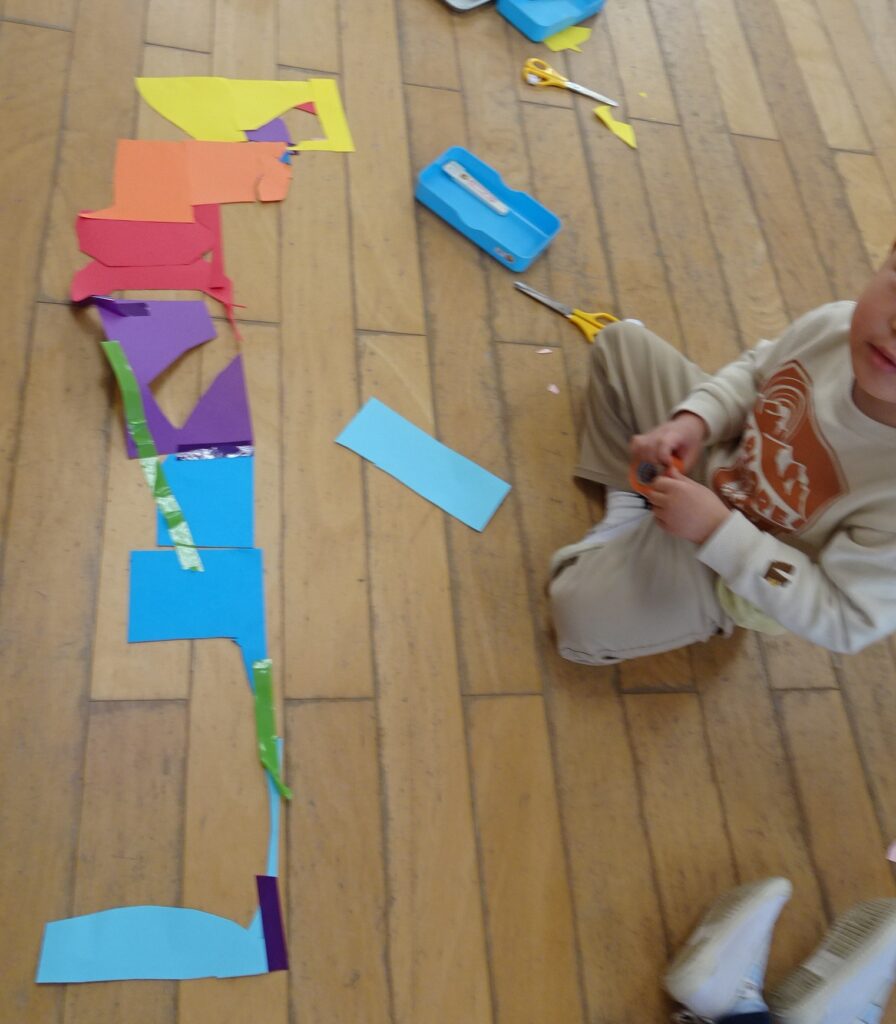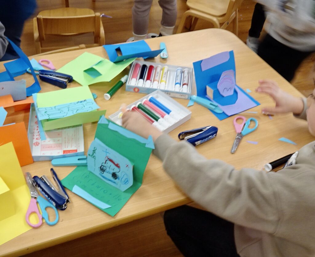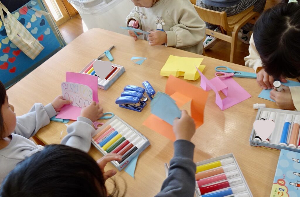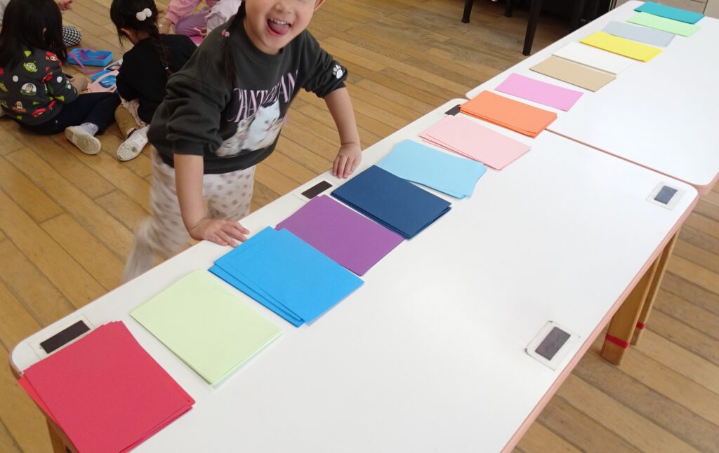 カードサイズの色画用紙を自由にハサミで切って