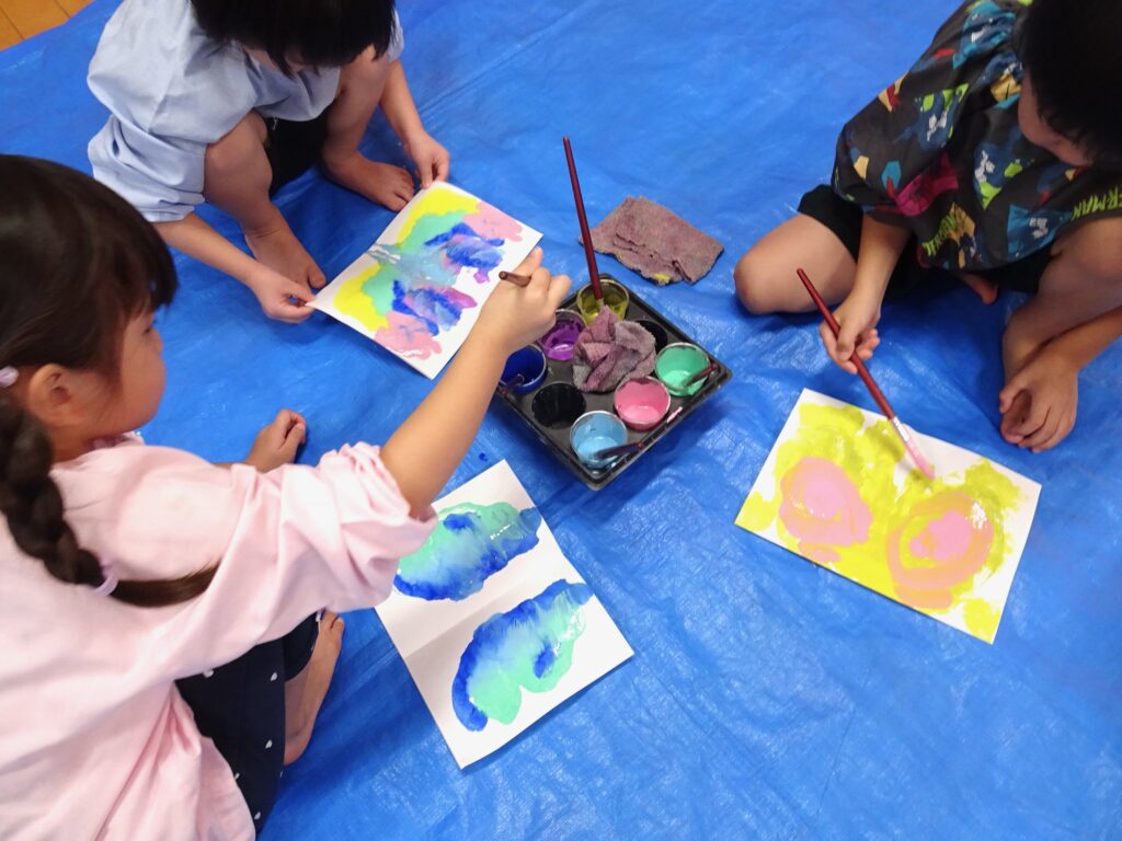 なんだこれは!と面白い絵の具の様子が見られる技法遊びです。