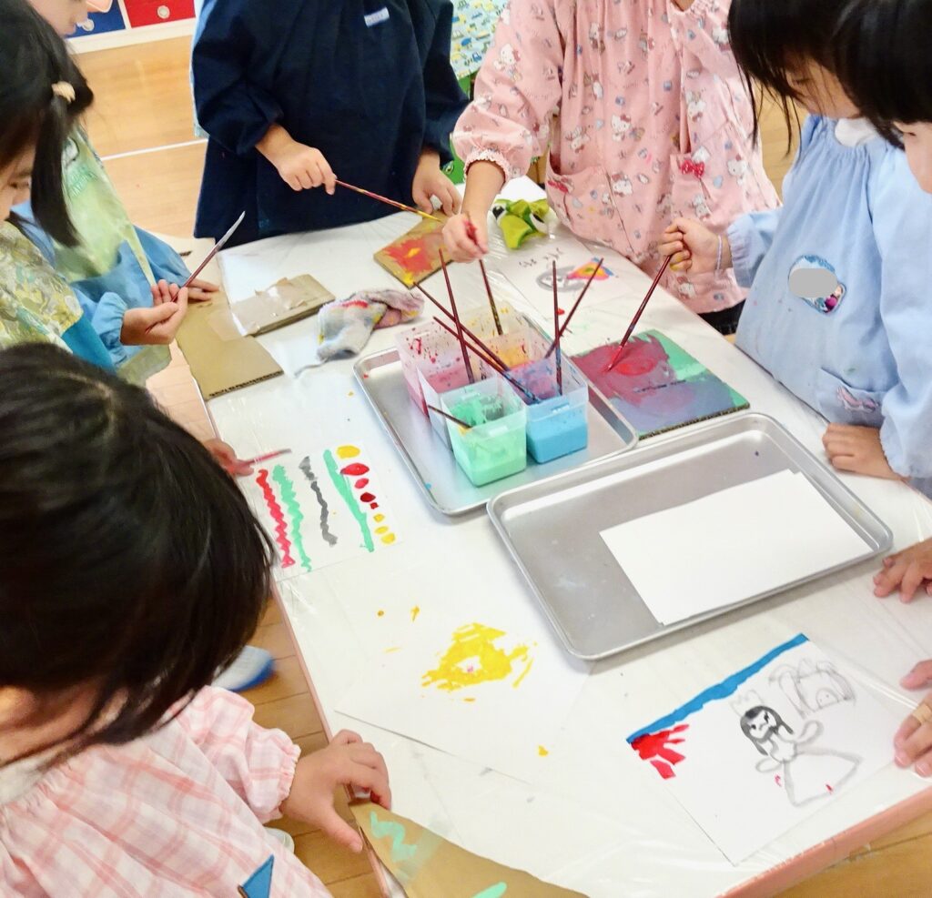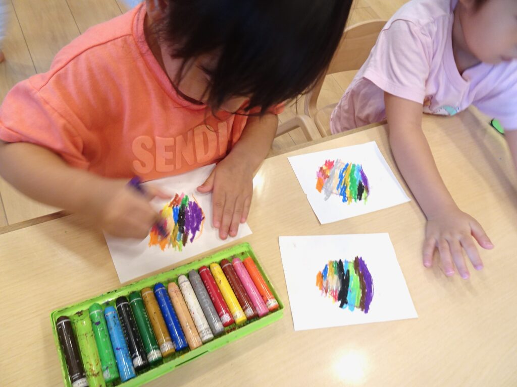 4さい「デカルコマニー技法遊び」