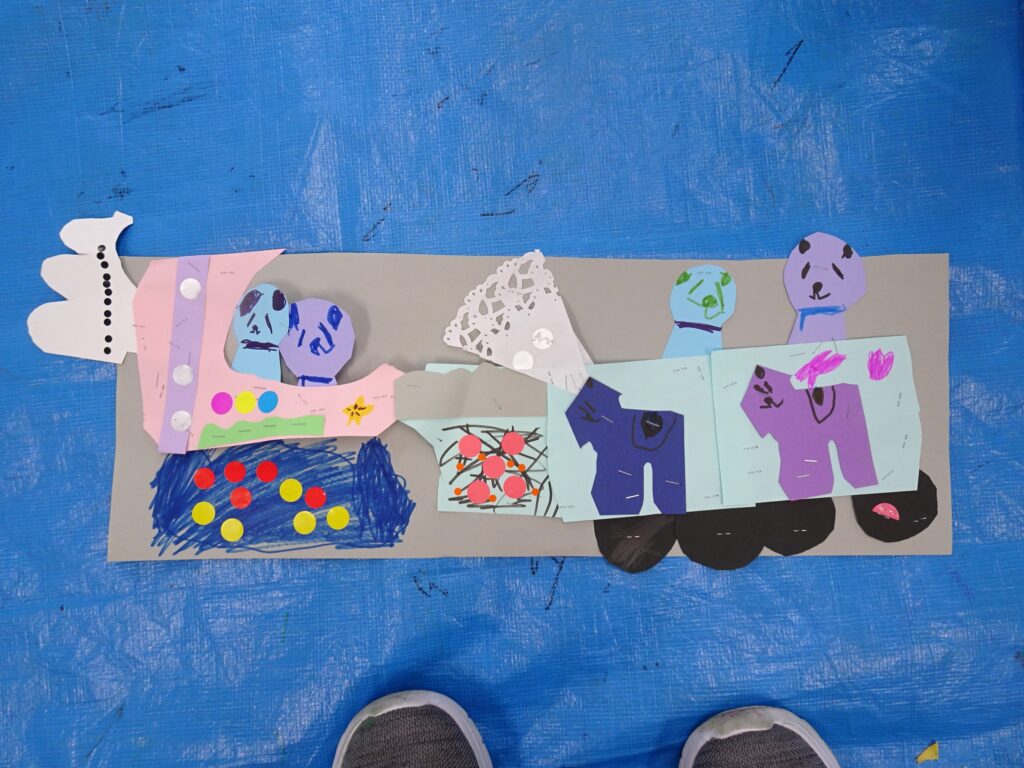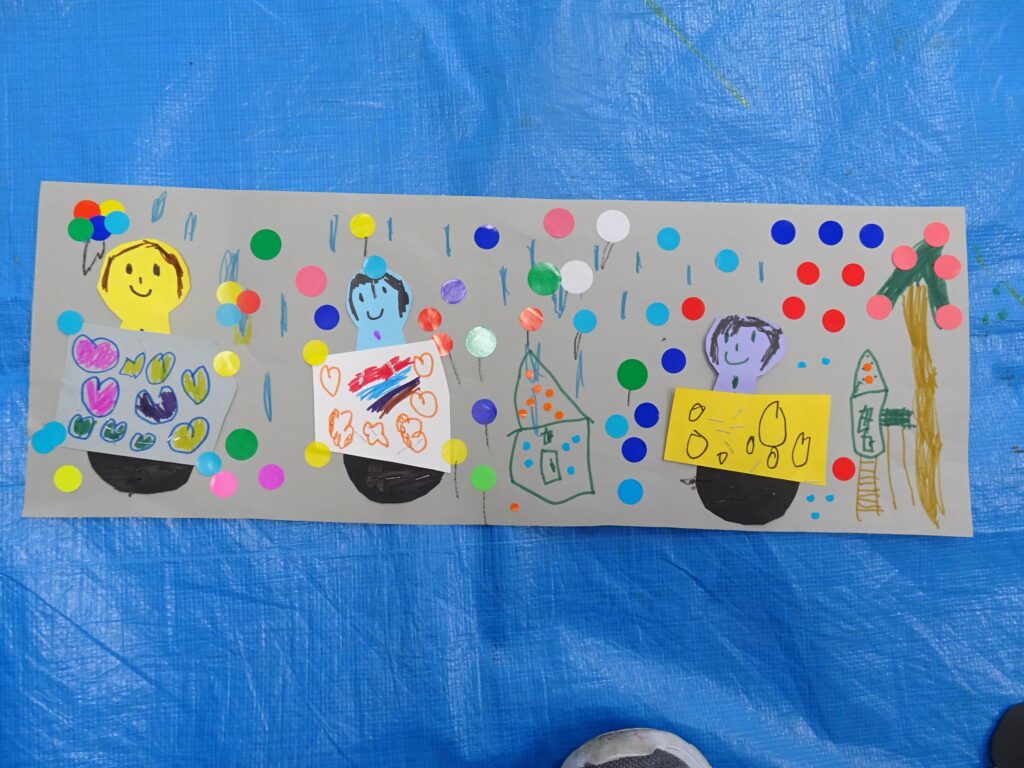 貼った絵をを見ながらお友達とお話しする姿も見られました。