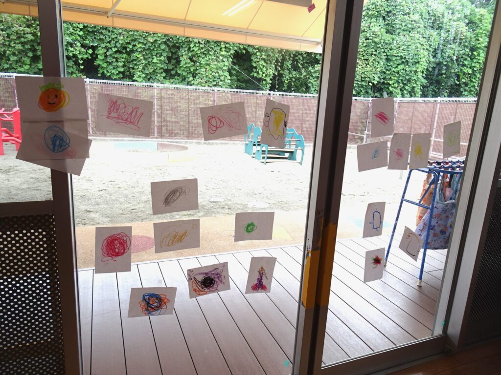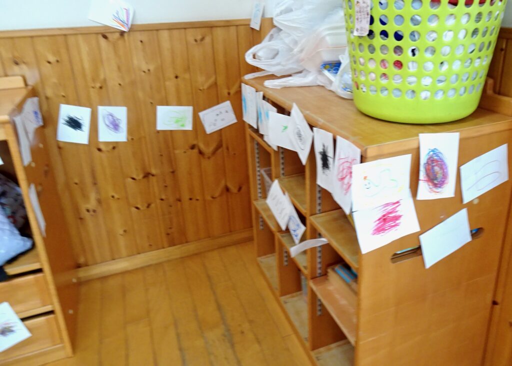 描けたお絵描きはお部屋に飾りました