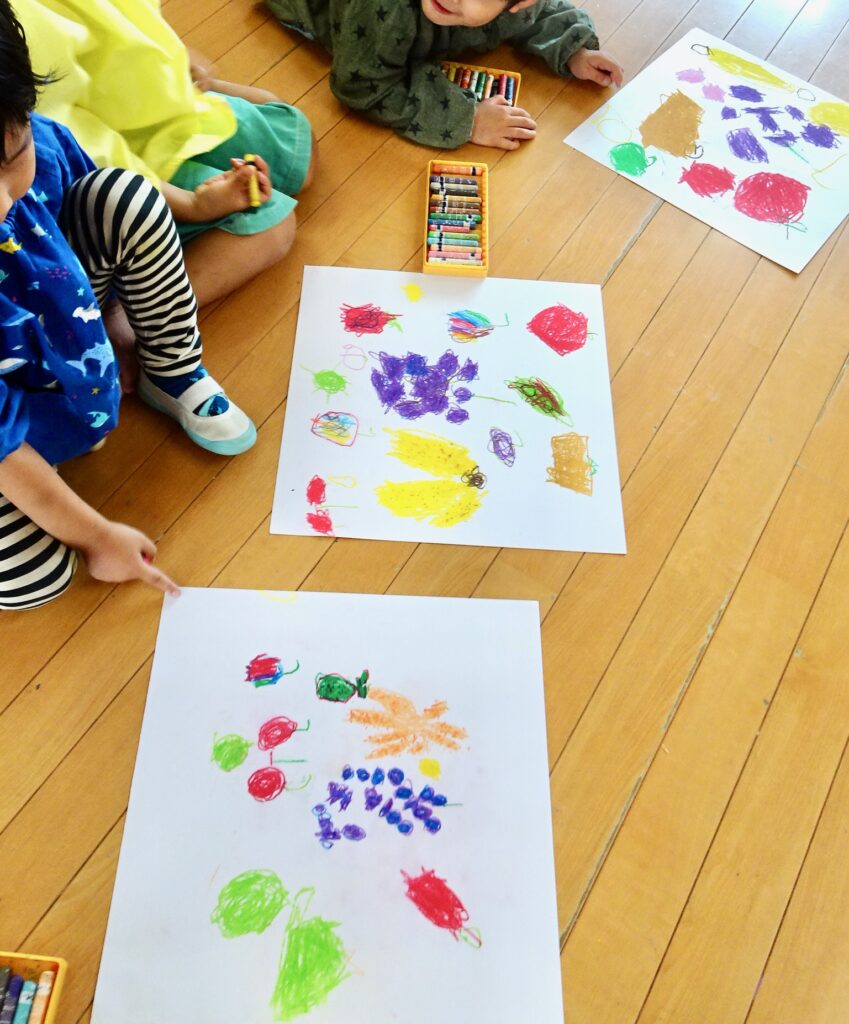 おかずから描く子もいれば、デザートばかり描く子もいたり