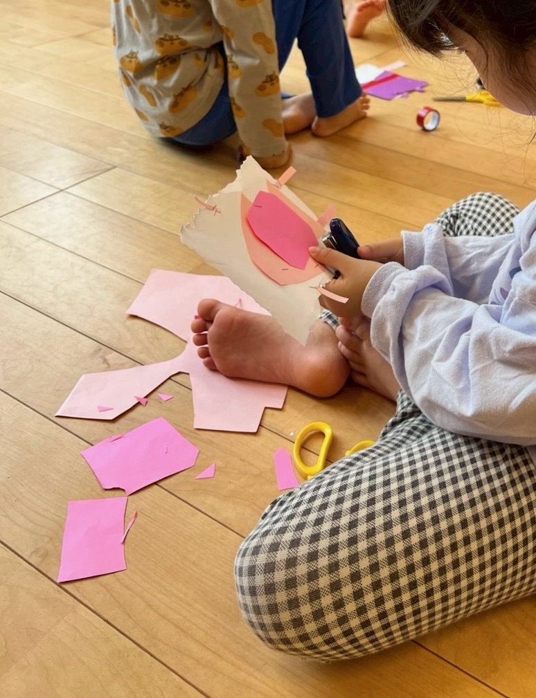 好きな感じの廃材を手に取って、切ったり貼ったりしているうちに
