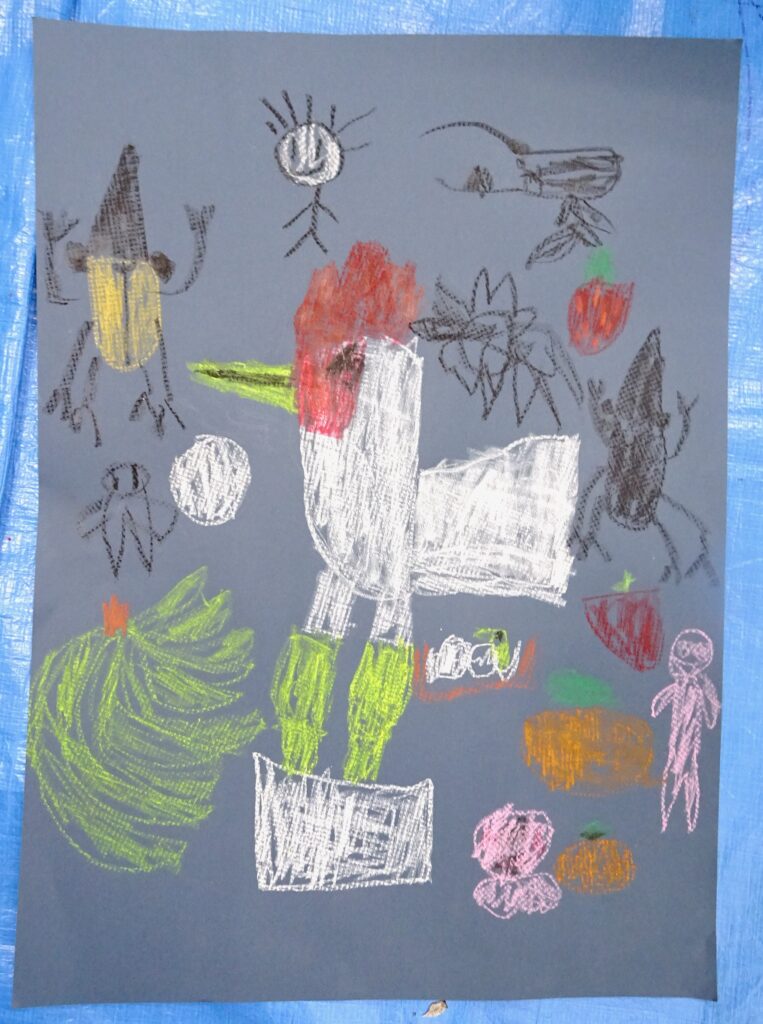 無重力のような、画面の使い方が自由なのは年少さんならではです。