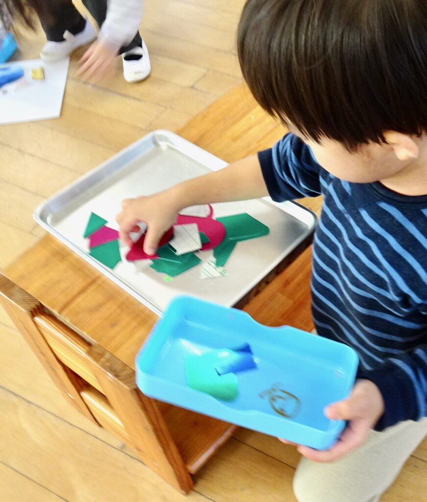 無重力のような、画面の使い方が自由なのは年少さんならではです。