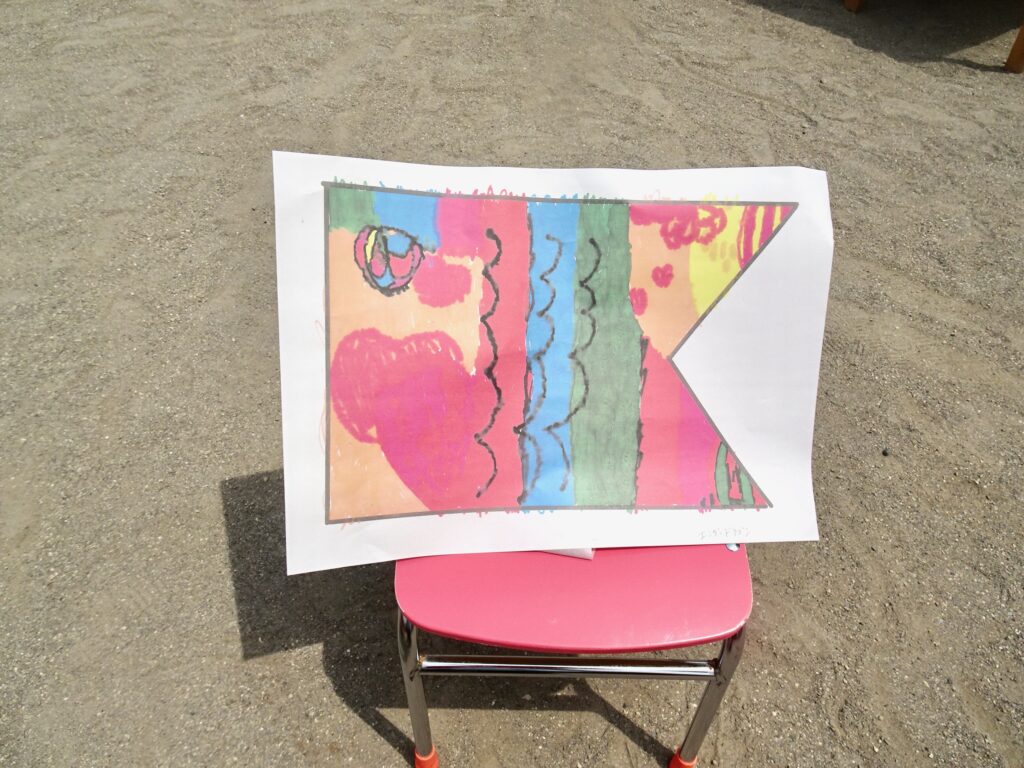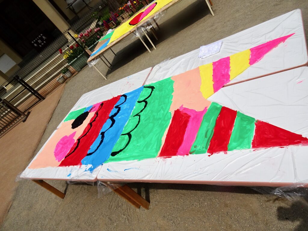 幼稚園では年長さんがオリジナルこいのぼりを作りました。