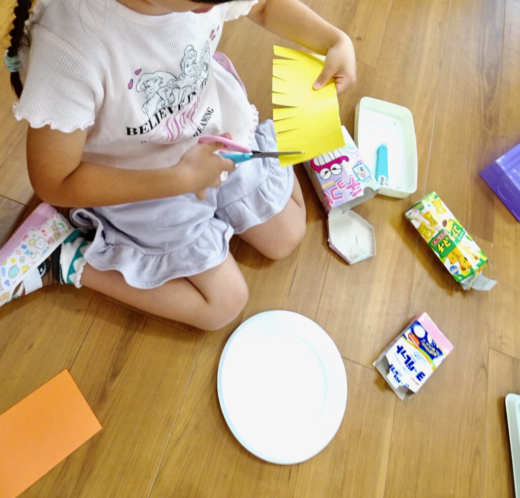 溜まってきたので、自由に作る工作遊びをしました。