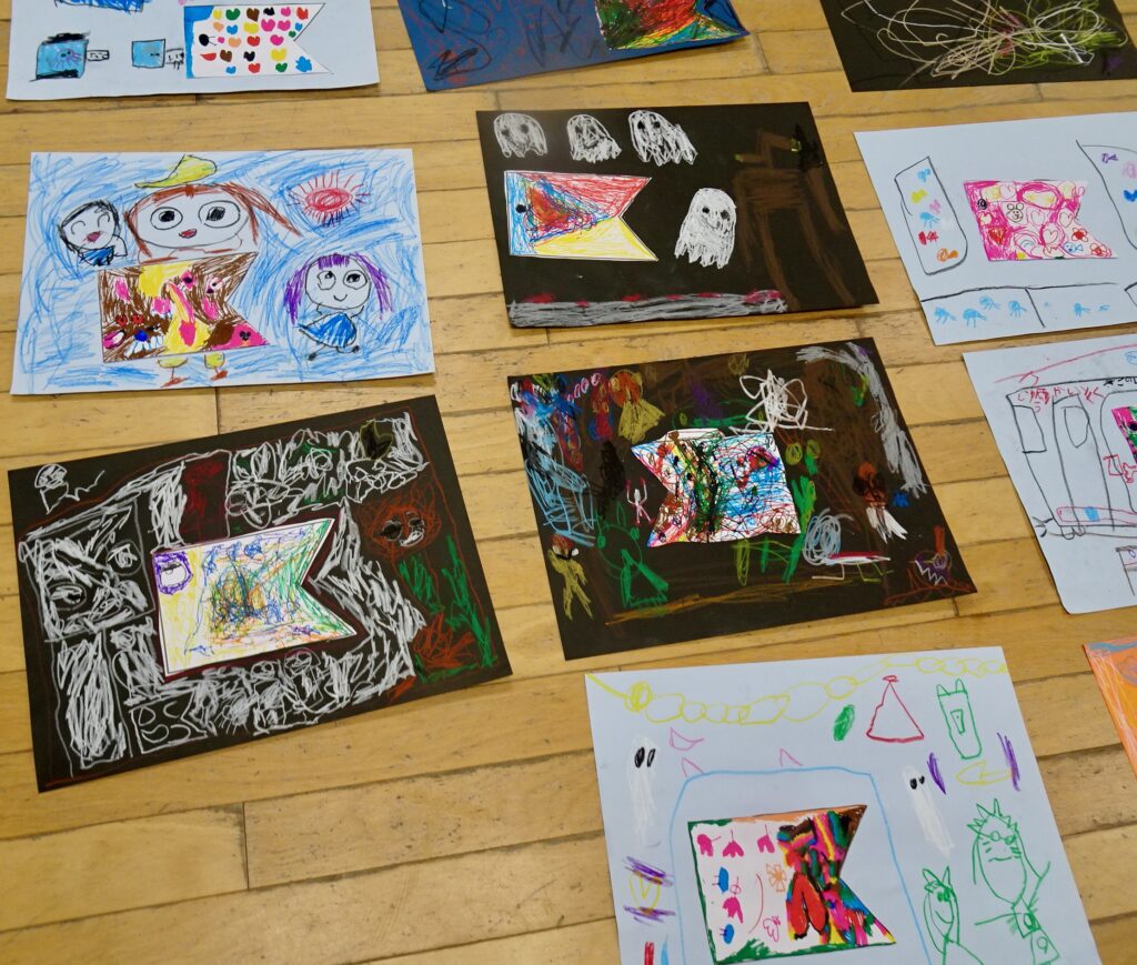 誰かが使った後の色画用紙の端切れが