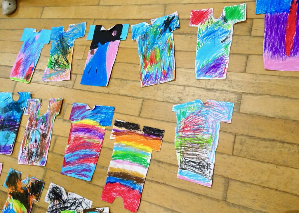 自分でちぎって、それを糊で貼る遊びです。
